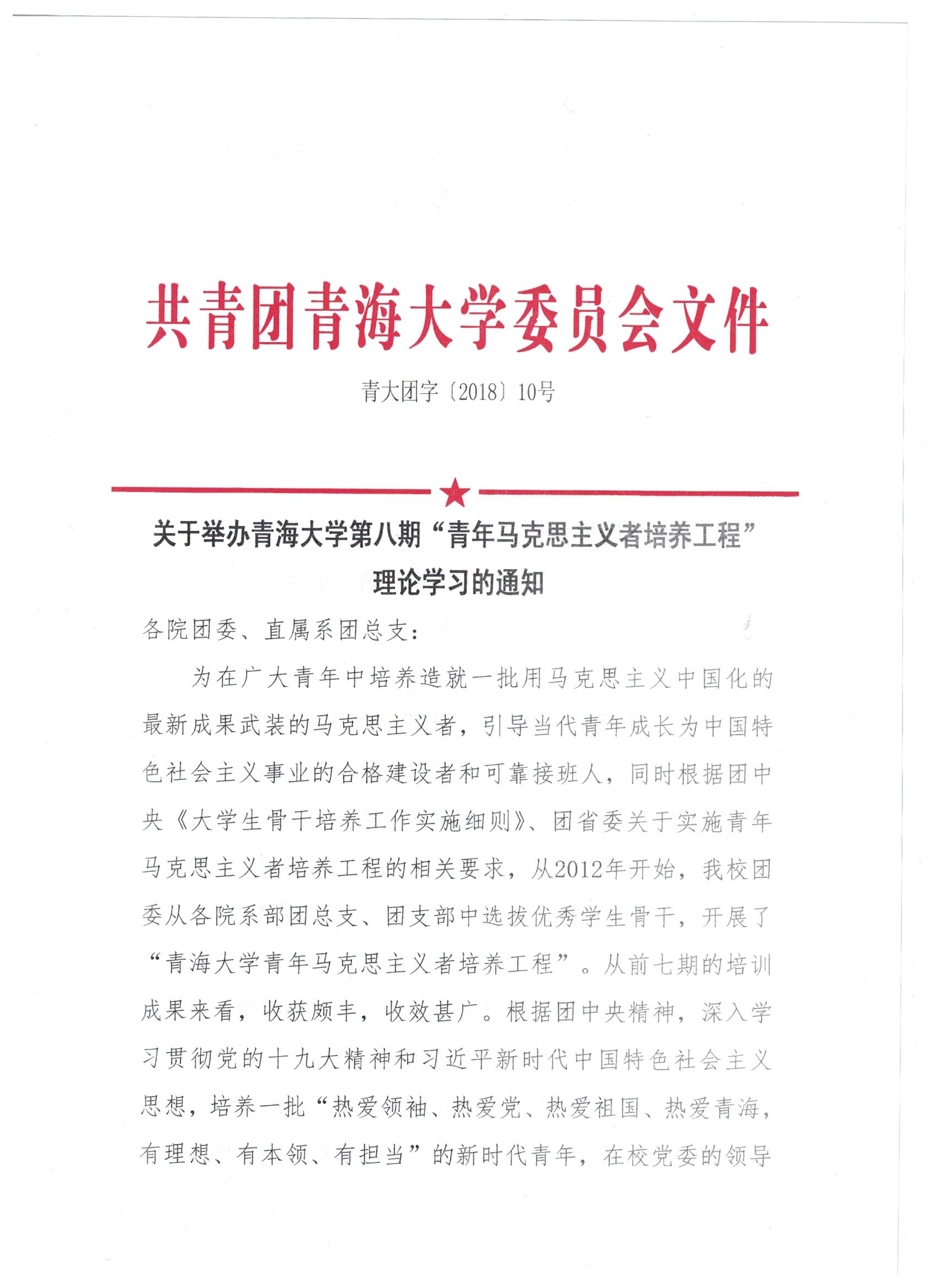 关于举办青海大学第八期“青年马克思主义者培养工程”理论学习的通知