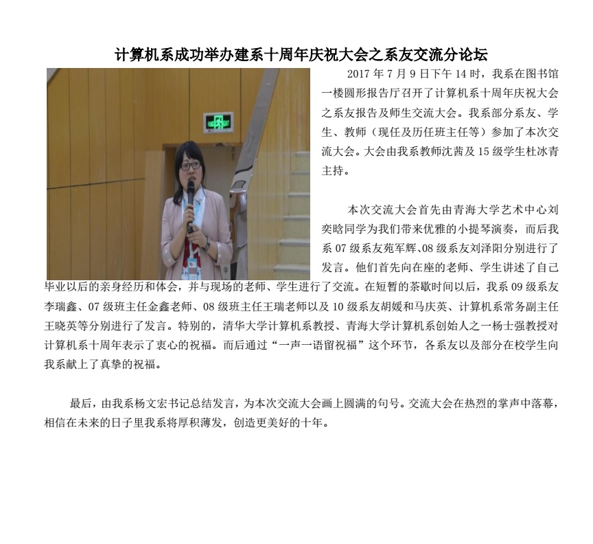 计算机系成功举办十周年庆祝大会系友交流分论坛