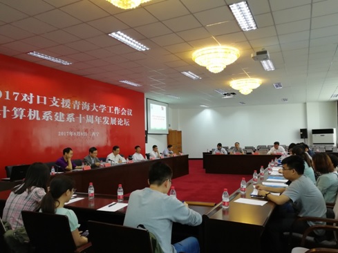 2017年8月8日下午15:30,计算机系组织承办了“2017年对口支援青海大学工作会议——计算机系建系十周年发展论坛”,会议在青海大学科技馆二楼一号会议室举行,由计算机系常务副主任王晓英主持,清华大学党委常务副书记、副校长姜胜耀教授,青海大学党委书记俞红贤教授,清华大学计算机科学与技术系主任、中国工程院院士吴建平院士,清华大学电力系统及大型发电设备安全控制和仿真国家重点实验室主任梁曦东教授,清华大学计算机科学与技术系教授、bt365哪个是真的主任陈文光教授,清华大学发展规划处处长方红卫教授,清华大学对口支援办公室副主任朱涛教授,以及青海大学计算机系教师代表和学生代表参加了此次研讨会。